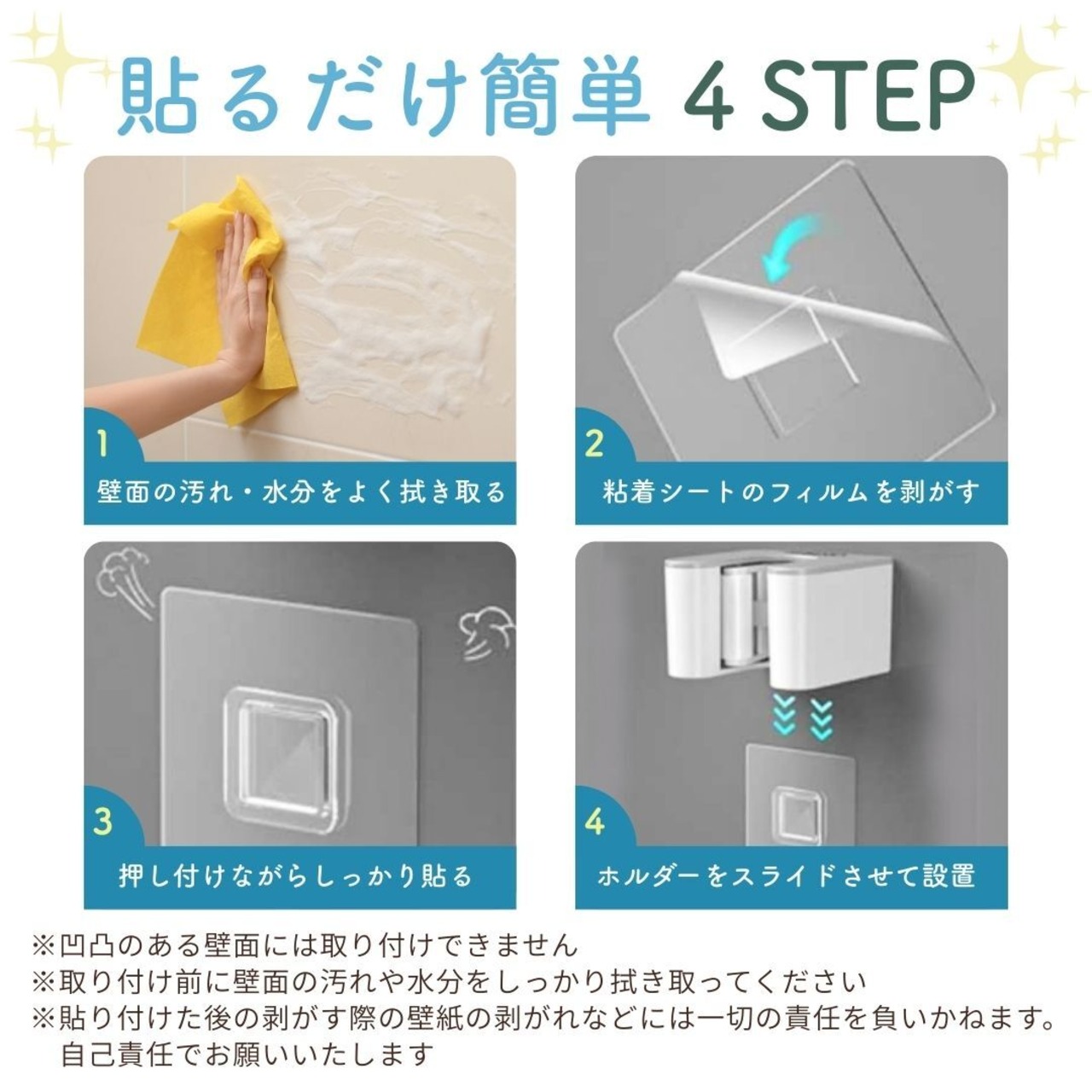 ・取り付け前に壁面の汚れや水分をしっかり拭き取ってください