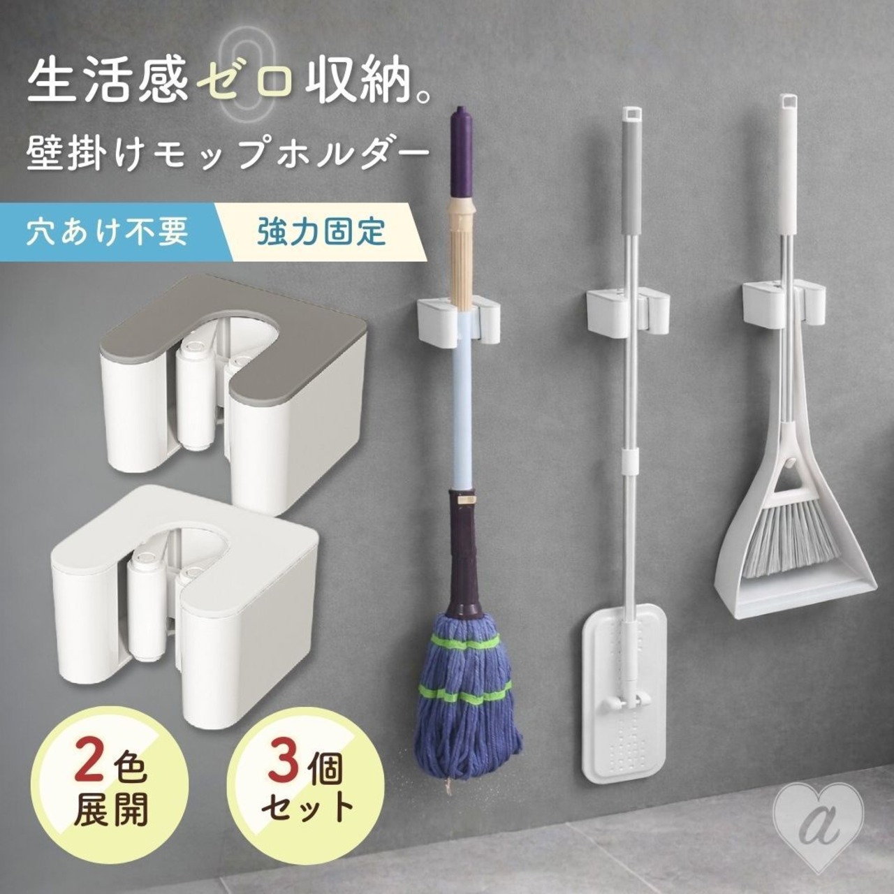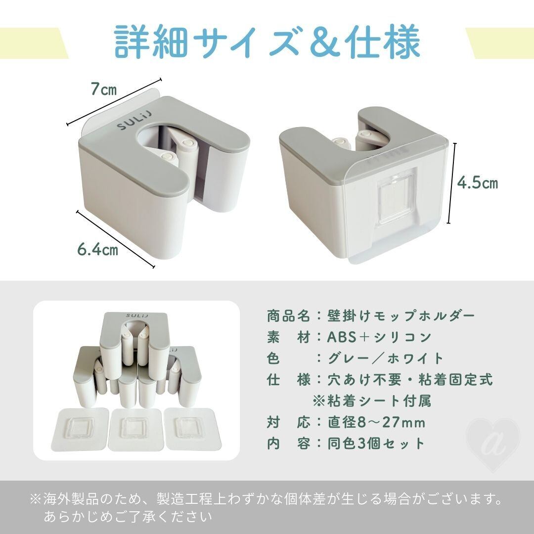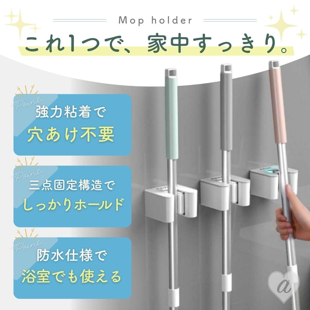 【置き配配送】穴あけ不要 壁掛けモップホルダー 3個セット モップクリップ 強力粘着 省スペース収納 防水 掃除用具ホルダー 壁掛け クリップ式 モップ掛け ほうきホルダー 掃除道具収納 整理整頓 シンプル コンパクト キッチン 浴室 トイレ ベランダ 洗面所 家庭用 収納グッズ 掃除用品収納 壁面収納 粘着フック | AiO ONLINE STORE