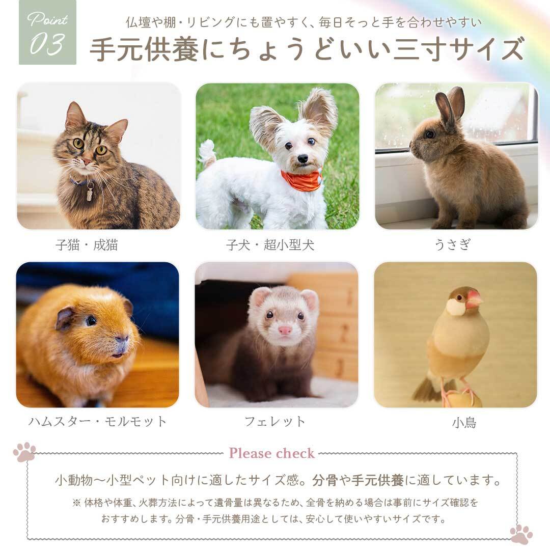 3寸骨壺以内のサイズに対応しています。