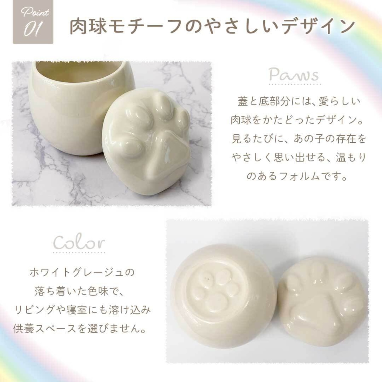 ペット骨壺 3寸 骨壺 肉球 デザイン 陶器 白 ホワイトグレージュ メモリアル 遺骨入れ 骨壺カバー 手元供養 ペット供養 ペット仏具 遺骨 遺灰 分骨 形見 供養グッズ メモリアルグッズ 愛犬 愛猫 犬 猫 うさぎ ハムスター 小鳥 インコ 文鳥 フェレット 小動物 虹の橋 命日 お悔み お盆 彼岸 | AiO ONLINE STORE