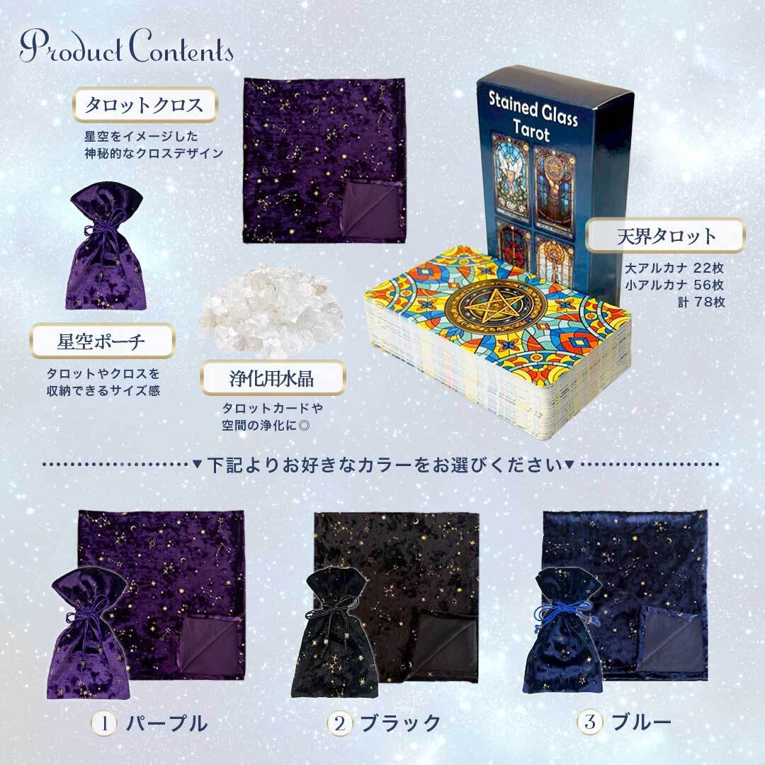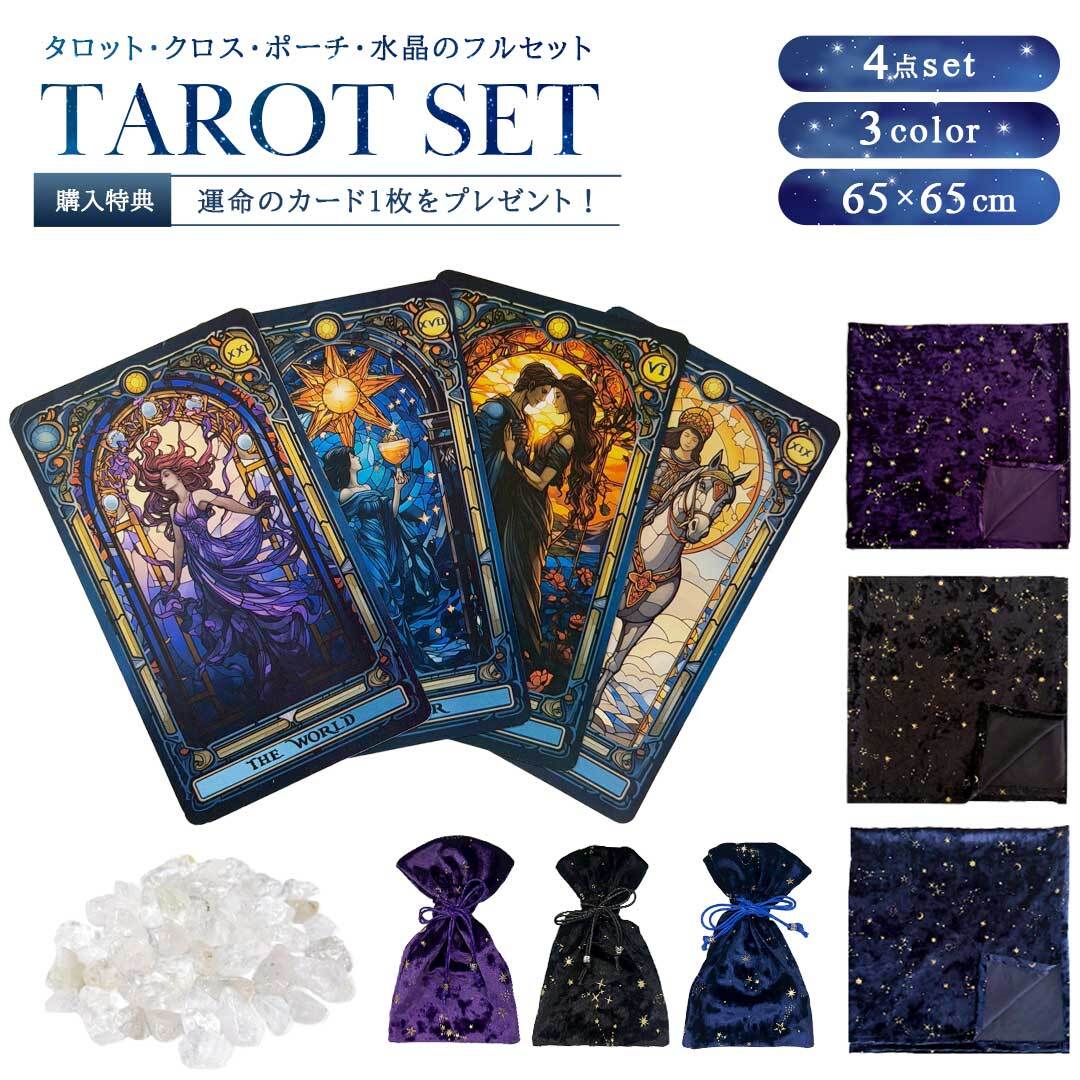 【特典|運命の1枚】 タロット 天界のタロット4点セット 【天界のタロス+星空のテーブルクロス&ポーチ+パワーストーン 水晶 さざれ石】 選べるクロス3カラー タロットカード テーブルクロス ポーチ パワーストーン セット クラシック カード オラクルカード オラクル oracle 紙製 タロットデッキ 敷物 敷布 マット 占い ゲームカード ボードゲーム デッキ ゲーム シャッフル 祭壇 タロット占い カード占い オラクル マジック テーブルマジック 滑らか 豪華 綺麗 高級感 神秘的 浄化 水晶 天然石 スピリチュアル 風水 お守り 開運 運勢 占星術 鑑定 リーディング ギフト プレゼント 初心者 プロ コレクション 占い師 マジシャン パフォーマー 魔術師 魔女 装飾