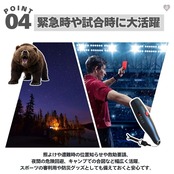 最大約120デシベルの強力な音が出せる電子ホイッスルです。ボタンを押すだけで安定した大音量を発し、スポーツやアウトドアシーン、熊よけ対策として大いに役立ちます。電子タイプなので息を吹き込む必要がなく、息切れや寒さに影響されずに確実に音を出せる点が大きなメリットです。山の中でも音量が安定して届き、遠くの野生動物に自分の存在を知らせることができます。