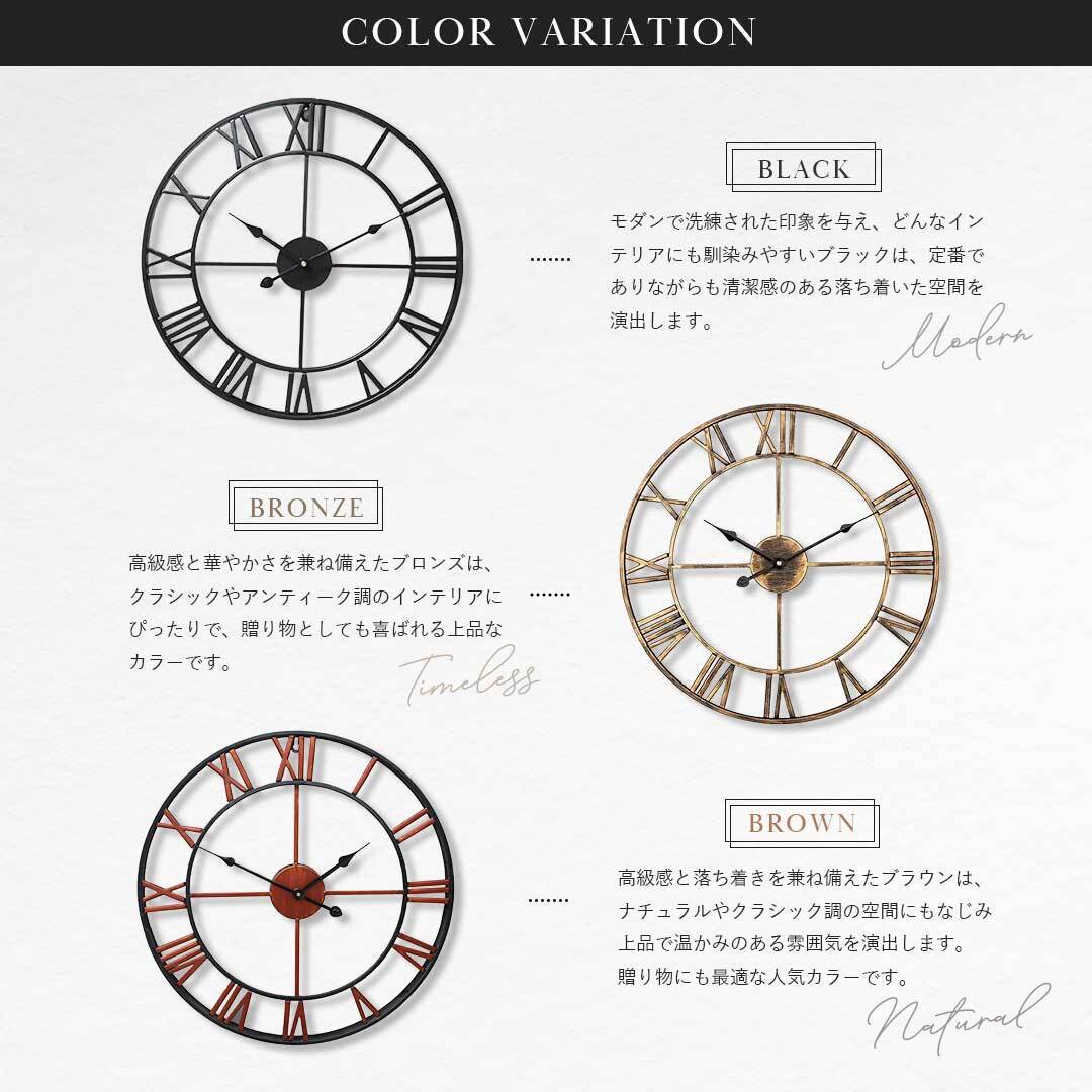 壁掛け時計 アイアンフレーム 60cm 大 おしゃれ 掛け時計 ブラックorブロンズorブラウン シンプル アンティーク 壁時計 リビング 秒針なし ウォールクロック 雑貨 インテリア アンティークデザイン アメリカンクロック 壁飾り 大きい 大きめ 静音 モダン 時計 北欧 欧風 | AiO ONLINE STORE