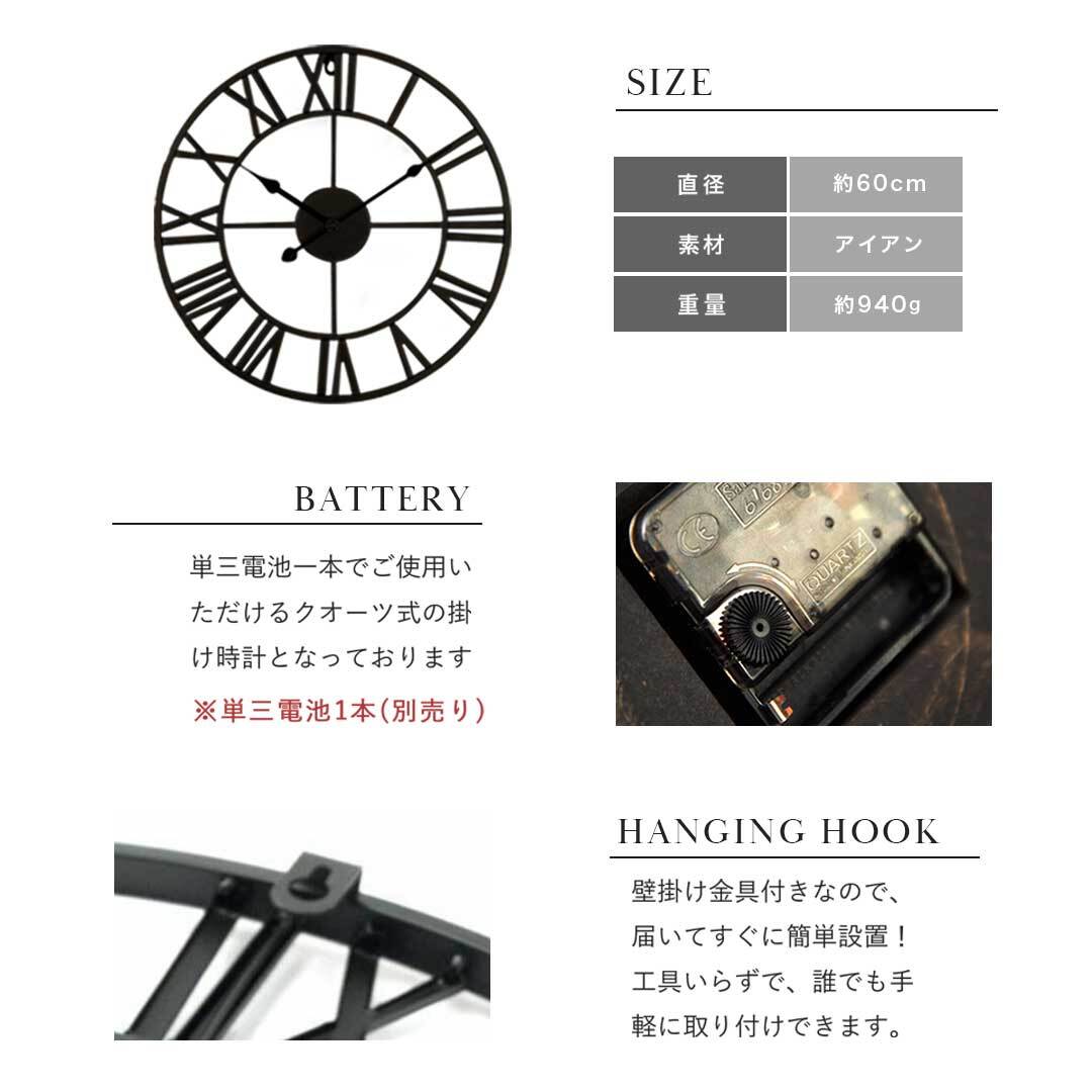 壁掛け時計 アイアンフレーム 60cm 大 おしゃれ 掛け時計 ブラックorブロンズorブラウン シンプル アンティーク 壁時計 リビング 秒針なし ウォールクロック 雑貨 インテリア アンティークデザイン アメリカンクロック 壁飾り 大きい 大きめ 静音 モダン 時計 北欧 欧風 オシャレ 音がしない 掛時計 新築 祝い おしゃれ 非電波 電池式 自宅 店舗 リビングルーム ベッドルーム ダイニング ホテル 図書館 寝室 学校 ヨーロッパ 西洋 テナント 会社 クラシック クラシカル デザイナーズ かっこいい かわいい オフィス 会社 応接室 雑貨屋さん レストラン 飲食店