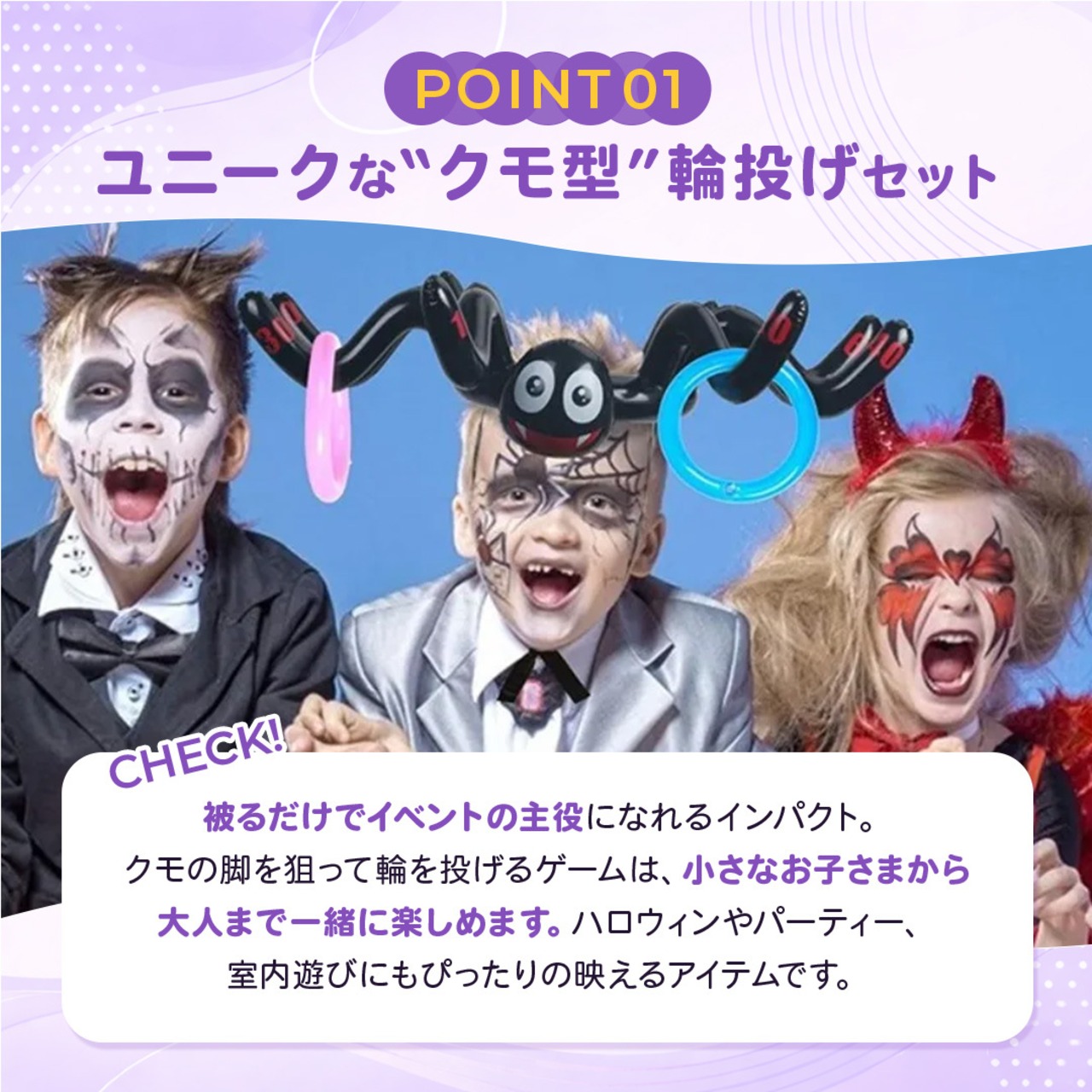 玩具 クモ 輪投げ バルーン 巨大 ハロウィン パーティー ゲーム エアー おもちゃ 室内 屋外 キッズ 子ども会 保育園 幼稚園 景品 イベント 盛り上げ グッズ ファミリー 遊具 SNS映え セット ギフト アウトドア 競技 レクリエーション 集中力 運動遊び 体験 学童 クラブ 活動 フォト 映え お祭り 子ども 大人数 遊び道具 余興 仮装 変装 コスプレ クリスマス 正月 新年 休日 遊び 家庭用 福袋 景品用 大会 応援グッズ プレゼント 誕生日 バースデー
