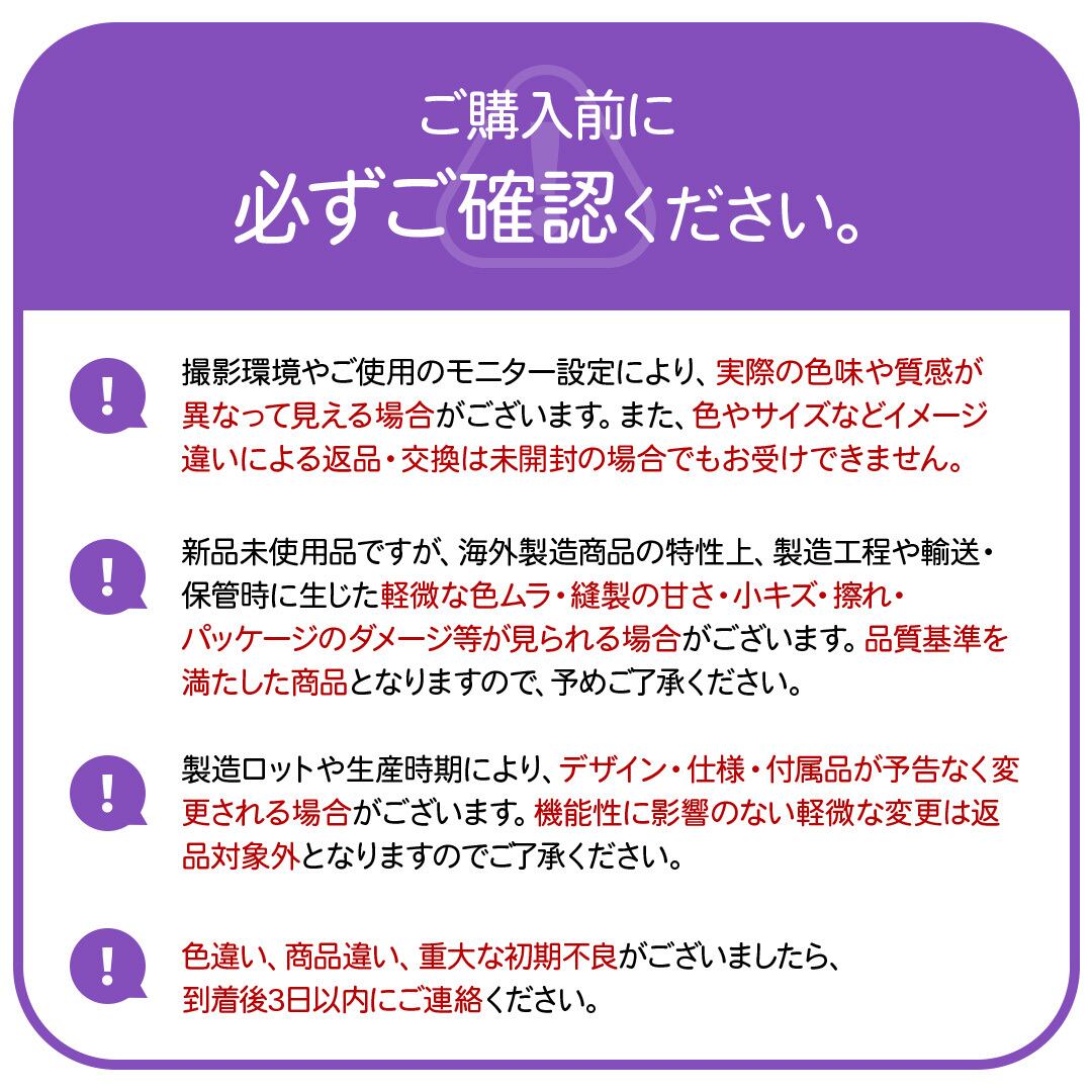 ● 新品未使用品ですが、海外製造商品の特性上、製造工程や輸送・保管時に生じた軽微な色ムラ・縫製の甘さ・小キズ・擦れ・パッケージのダメージ等が見られる場合がございます。品質基準を満たした商品となりますので、予めご了承ください。