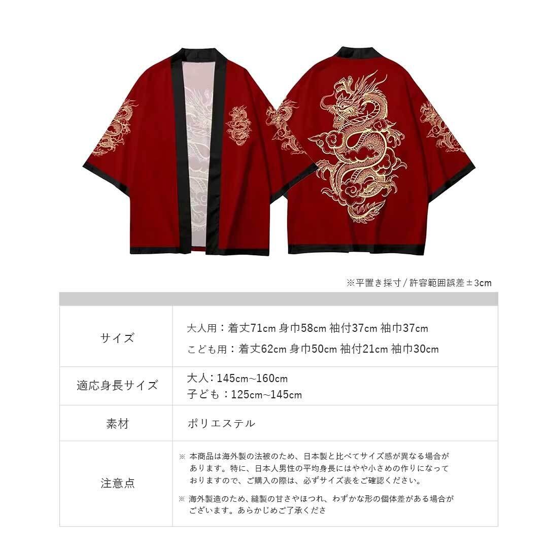 軽量で通気性の良い素材を採用しているため、長時間の着用でも快適。帯を合わせればフォーマルな印象に、羽織るだけでもカジュアルに着こなせる汎用性の高さも魅力。大人用・子供用の2サイズ展開で、家族や仲間とお揃いコーデも楽しめます。