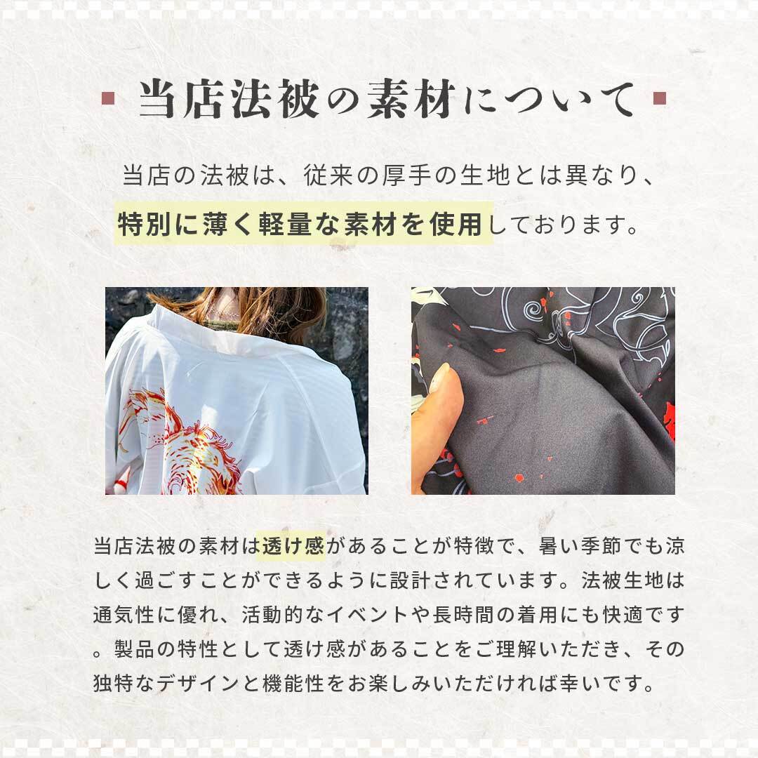 ※本商品は海外製の法被のため、日本製と比べてサイズ感が異なる場合があります。特に、日本人男性の平均身長にはやや小さめの作りになっておりますので、ご購入の際は、必ずサイズ表をご確認ください。