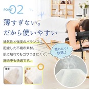 軽量で通気性と強度のバランスに優れた不織布素材で、肌に触れてもゴワつきにくく、防水性にも配慮されており、汗や水分を素早く弾き、ベッドやマットを汚れから守ります。