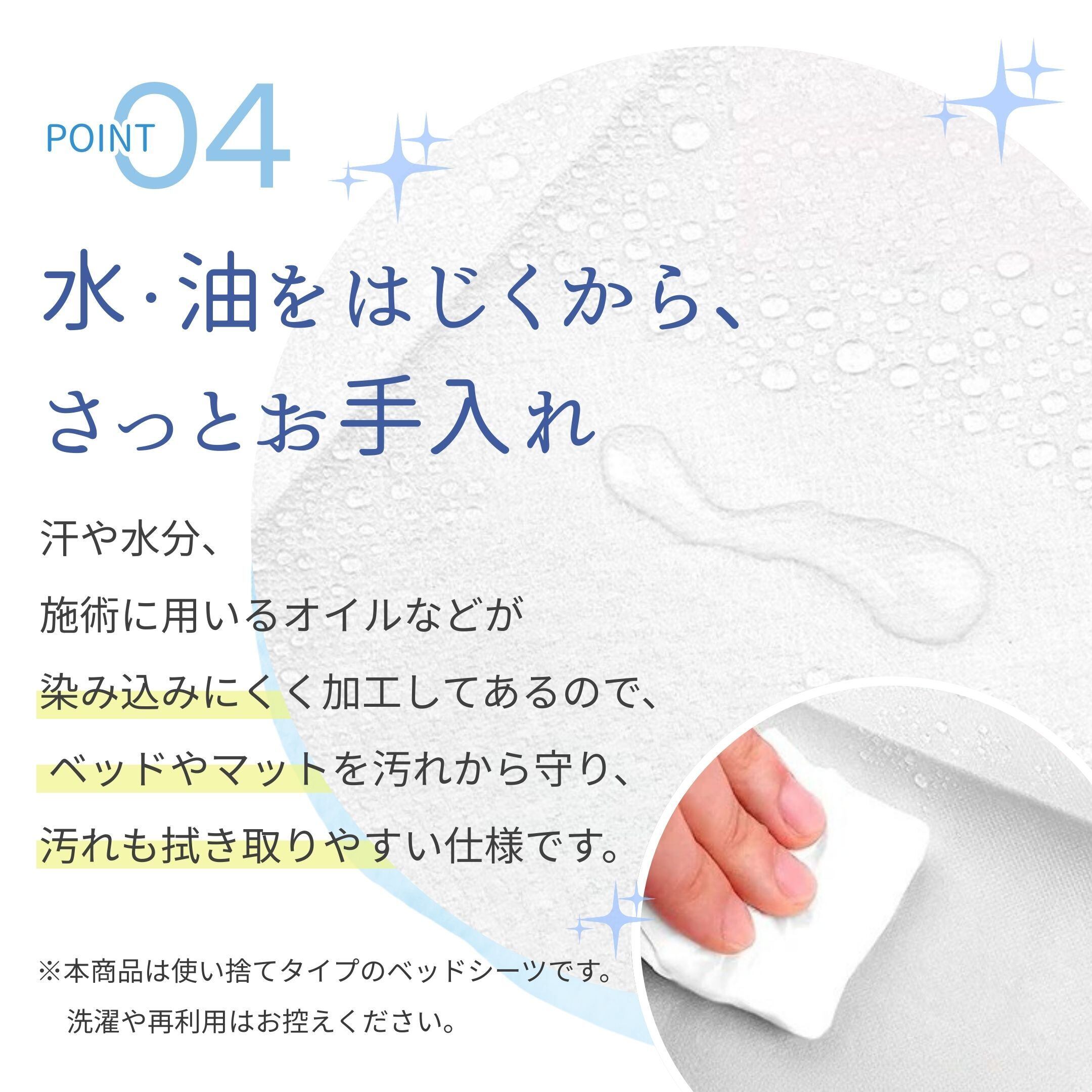 ・本商品は使い捨てタイプのベッドシーツです。洗濯や再利用はお控えください。