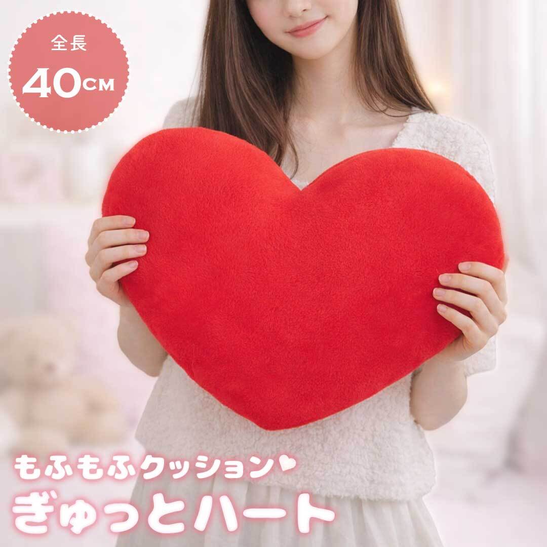 ハート型 もふもふクッション 40cm 大きめ 抱き枕 クッション ぬいぐるみ PPコットン ふわふわ 柔らかい 軽量 インテリア ソファ ベッド かわいい 癒し 雑貨 おしゃれ 写真 撮影 小物 ディスプレイ プレゼント ギフト 贈り物 誕生日 記念日 バレンタイン 自分用 ご褒美 赤 ハート レッド バレンタイン
