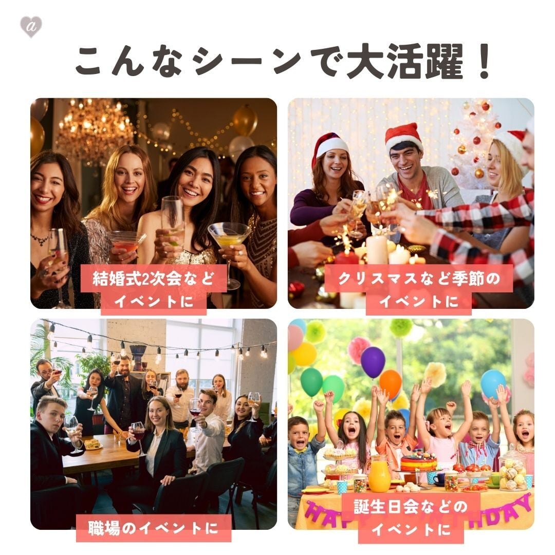 クリスマス・正月・周年祭など季節イベントにも最適。組み立て簡単で繰り返し使えるため、コストパフォーマンスも良好です。