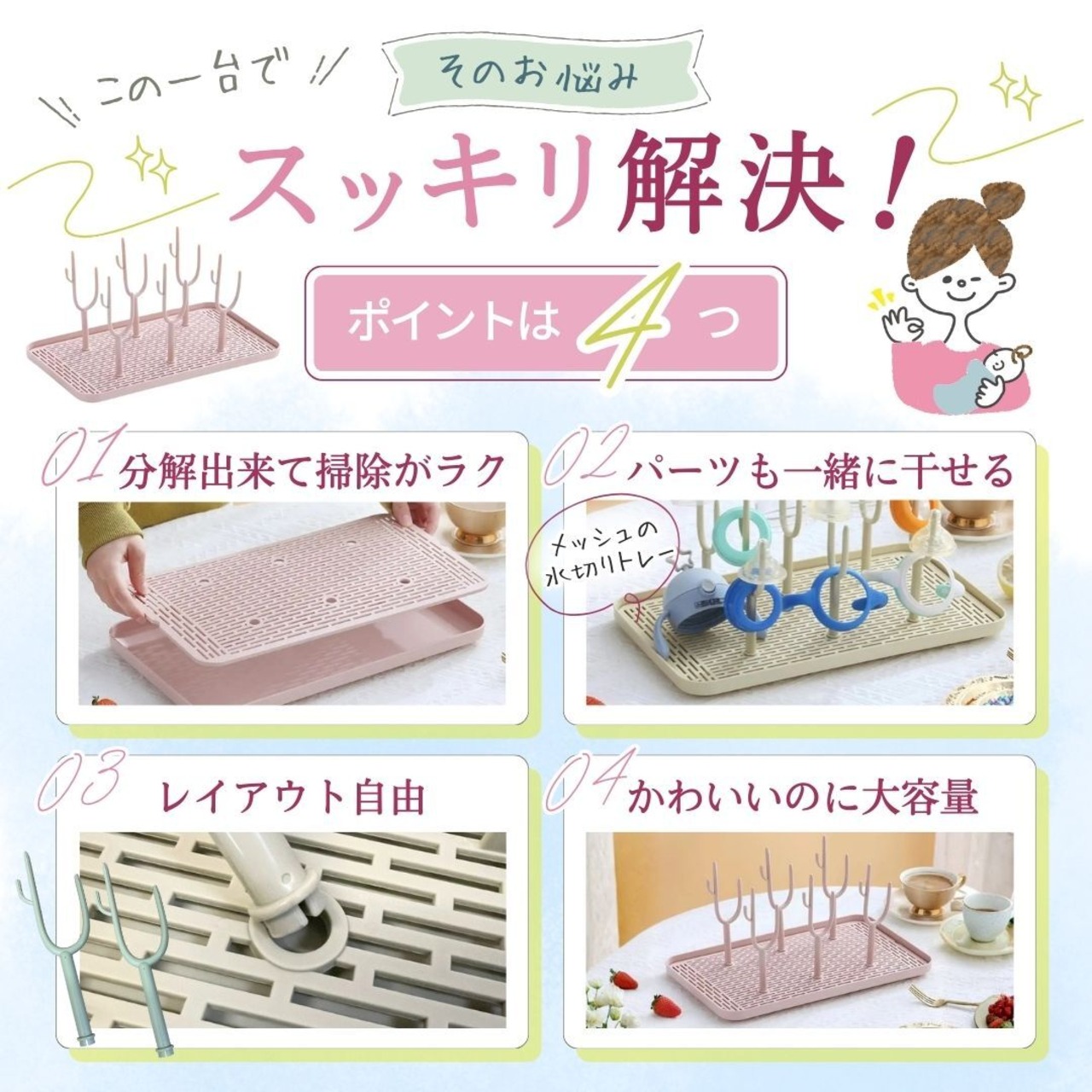 【毎日使う哺乳瓶を“衛生的にスッキリ乾燥”】