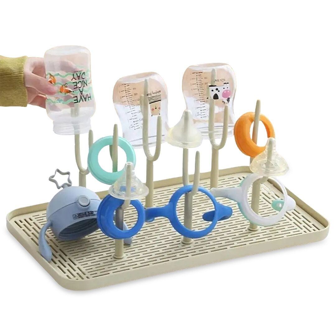 哺乳瓶 水切りラック 39cm 大容量 哺乳瓶スタンド ベビー用品 乾燥ラック 取り外し可能 支柱 洗いやすい 水切りトレイ 掃除 簡単 衛生的 省スペース 乾燥スタンド 哺乳びん 乳首 ストローマグ 食器 小物 収納 ベビーグッズ 便利グッズ 出産準備 出産祝い 授乳グッズ