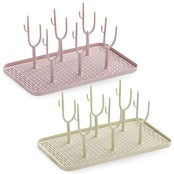 哺乳瓶・乳首・ストローマグ・小物パーツなど、赤ちゃん用品をまとめて乾燥できる便利な水切りラックです。通気性に優れた構造でしっかり水が切れるため乾きが早く、清潔な状態をキープしやすいのが魅力。かさばらないので見た目もスッキリ!