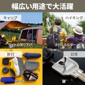 鍵、ミニポーチ、ボトルホルダー、ライト、エコバッグなど、すぐ使いたい小物の取り付けに最適。キャンプ・ハイキング・旅行・通勤バッグなど、さまざまなシーンで「ちょっとした引っ掛け」に便利です。片手で開閉できるゲート式で、スムーズに脱着できます。