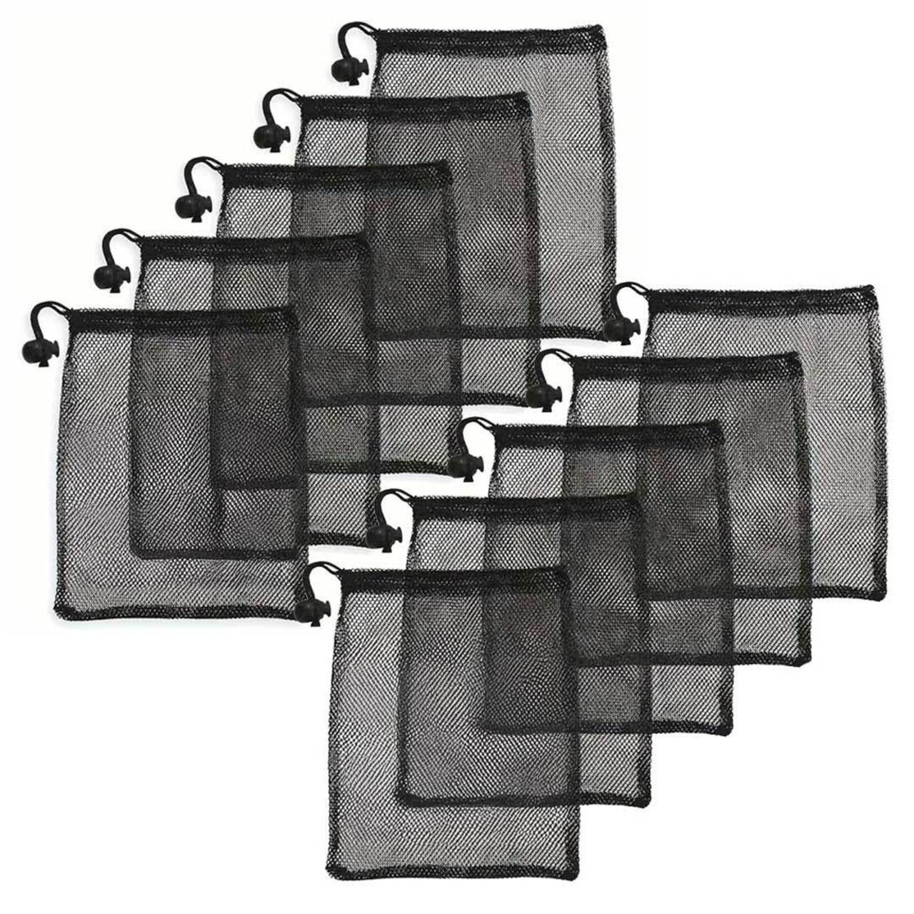 まとめ買い メッシュ袋 ブラック 10枚セット メッシュポーチ メッシュバッグ 巾着袋 多用途 収納袋 小分け袋 仕分け袋 小物整理 業務用 釣り アウトドア キャンプ 登山 旅行 小物入れ 部品収納 パーツ管理 工具収納 店舗備品 在庫管理 吊り下げ収納 巾着タイプ シンプル 無地 収納ケース 収納アイテム 便利グッズ 雑貨 黒 メッシュ 収納 旅行用品 収納グッズ