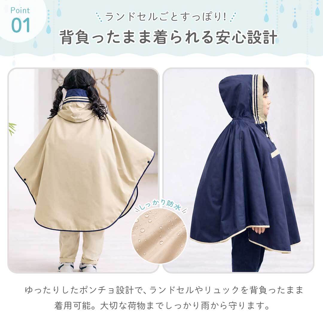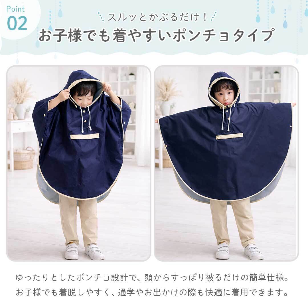 子供用 レインポンチョ ランドセル対応 レインコート 2カラー 3サイズ 収納バッグ付き ポンチョ ポケット付き 完全防御 カバンごと着れる フード付き カジュアル かわいい ワイド リュック対応 かっぱ カッパ 雨合羽 雨具 雨 梅雨 雨天 雨対策 梅雨対策 雨よけ 台風 旅行 釣り アウトドア