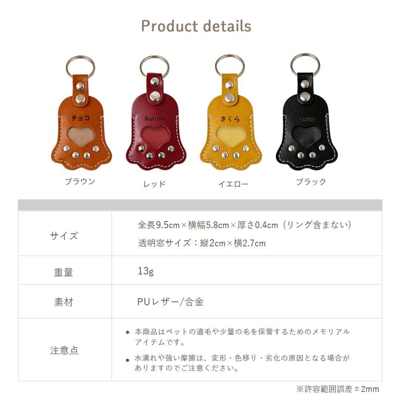 ・本商品はペットの遺毛や少量の毛を保管するためのメモリアルアイテムです。
