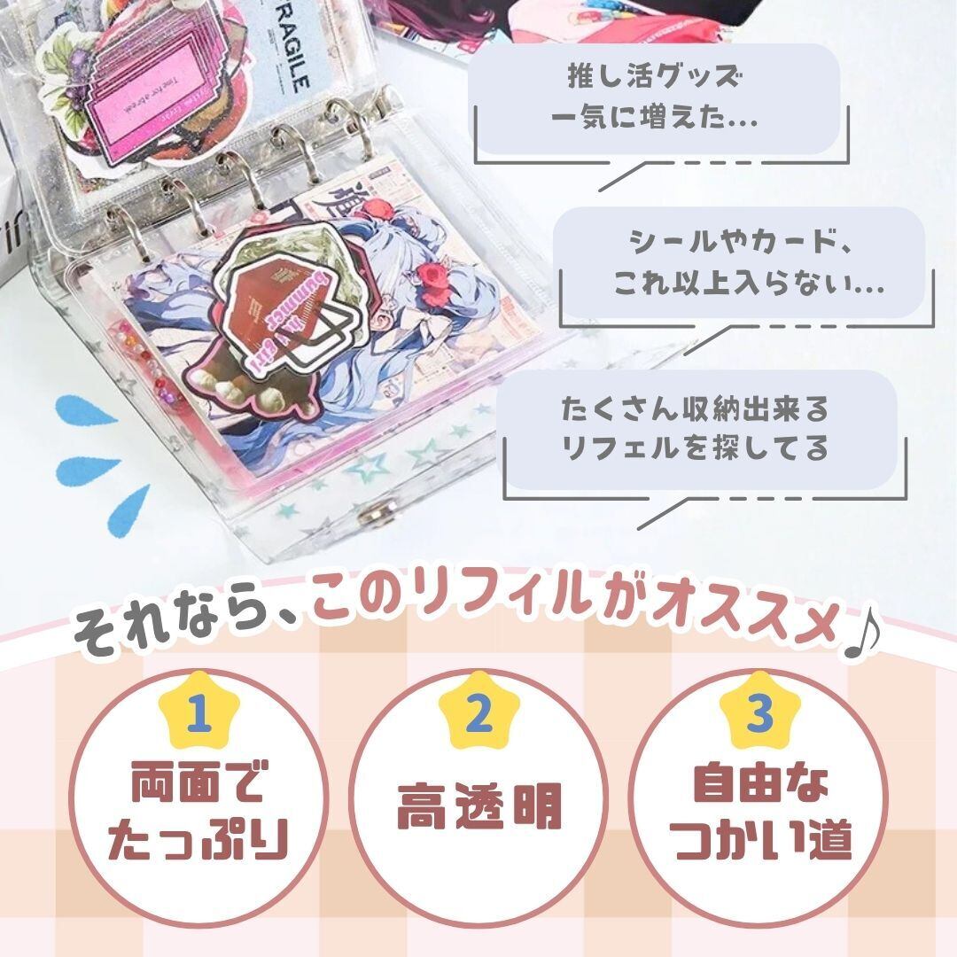 【普通郵便発送】 シール帳用 追加シート リフィル 10枚入り 推し活グッズ バインダー シールバインダー用 透明 クリア M5サイズ リング式 手帳 シール収納 ファイル シール整理 コレクション 手帳型 かわいい 女の子 男の子 グッズ トレカ収納 カード収納 写真収納