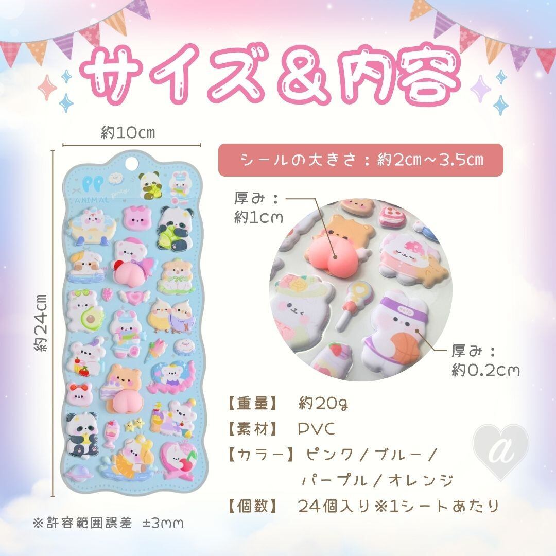 【普通郵便発送】 デコシール ぷっくり立体 アニマル デコシールセット 全4カラー おしり シール 立体シール アニマルシール ぷっくりシール 可愛いシール 動物シール デコレーションシール 手帳デコ ノートデコ ステッカー かわいいシール 女の子向け シールセット デコ素材 文房具 手帳