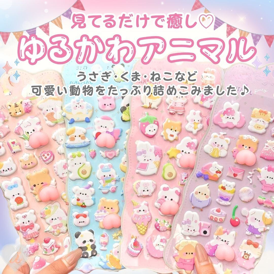 日常で使うアイテムを簡単に可愛くアレンジできるぷっくり立体アニマルシール。かわいいデコレーションを楽しみたい方にぴったりのシールセットです。
