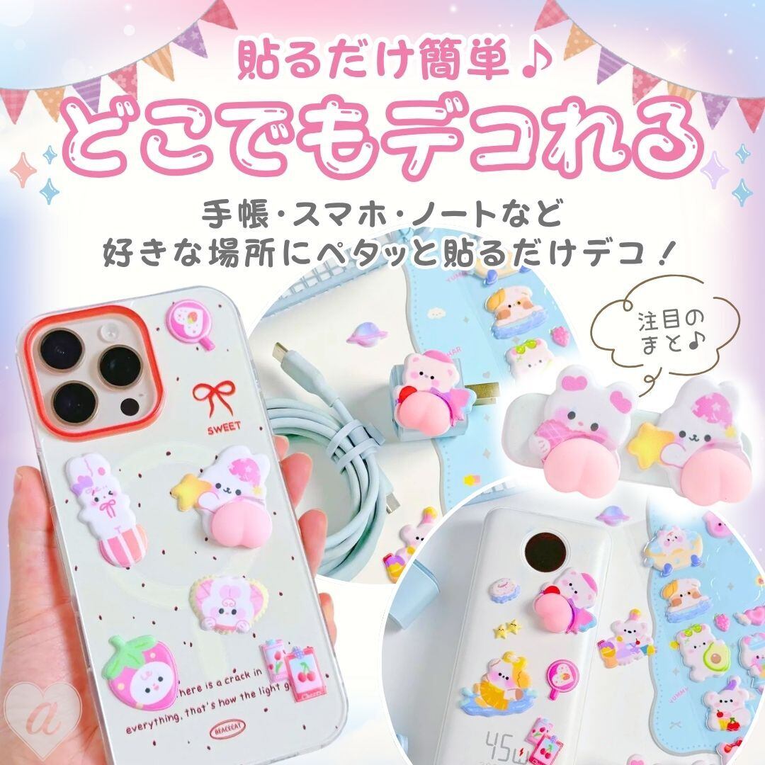 また、スマートフォンケース、タブレット、ペンケース、ノートパソコン、小物ケースなどのデコレーションにもおすすめです。好きな場所に貼るだけで簡単に可愛くアレンジできるため、DIYデコレーションが好きな方にも人気のアイテムです。ぷっくりとした質感がアクセントになり、見た目にも楽しい仕上がりになります。