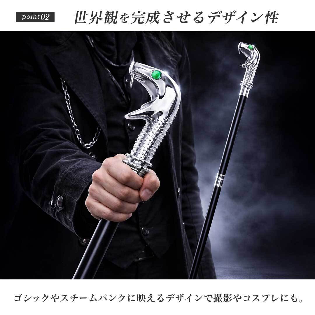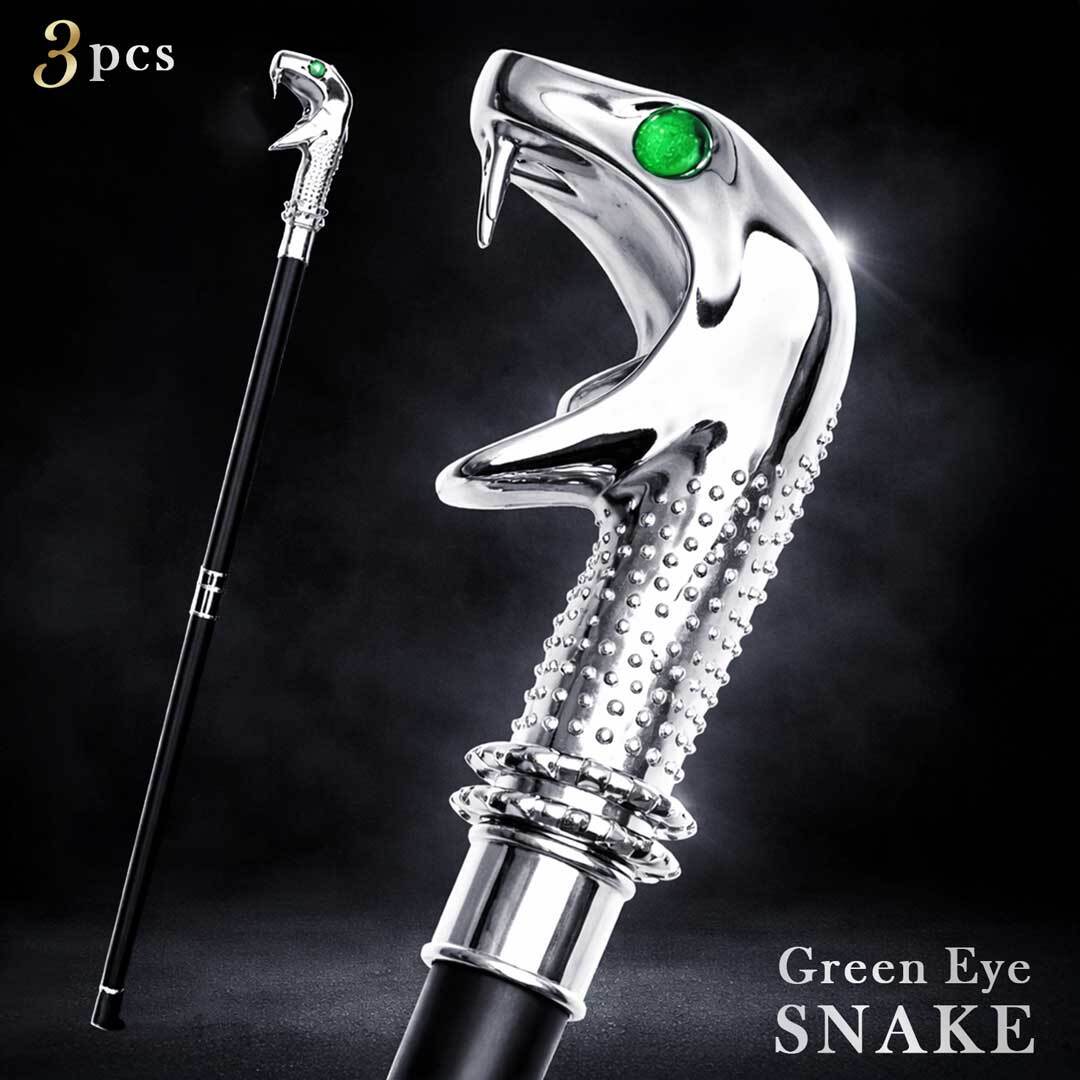 杖 グリーンアイ スネーク シルバーヘッド ステッキ 銀蛇緑眼 メンズ レディース 紳士 ヴィンテージ風 ゴシック パンク ファンタジー 中世 スチームパンク おしゃれ ファッション 装飾ステッキ アート 小道具 ファッション小物 舞台 撮影 文化祭 学園祭 劇 コスプレ 仮装