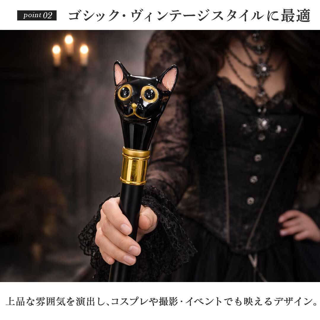 杖 クロネコ 黒猫 ステッキ ブラックキャット メンズ レディース 紳士 ヴィンテージ風 ゴシック パンク ファンタジー 中世 おしゃれ ファッション 装飾ステッキ アート 小道具 ファッション小物 舞台 撮影 文化祭 学園祭 劇 コスプレ 仮装 ハロウィン 雑貨 男女兼用
