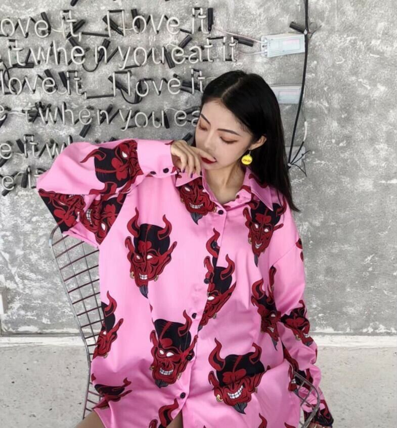 【在庫限り】鬼シャツ 長袖 ピンク パープル ロングシャツ ビッグシルエットシャツ 上着 紫