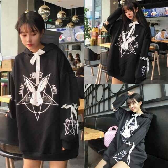 【在庫限り】ウサギ 魔方陣 レディース パーカー 長袖 半袖 ビッグシルエット ロリータ 病みかわ 韓国 オルチャン 韓流 フード付き