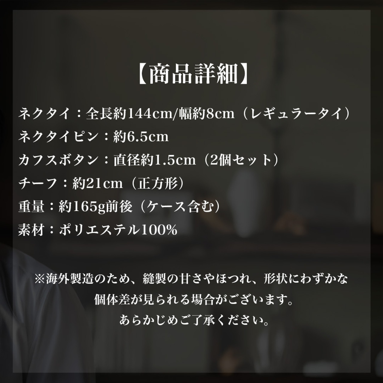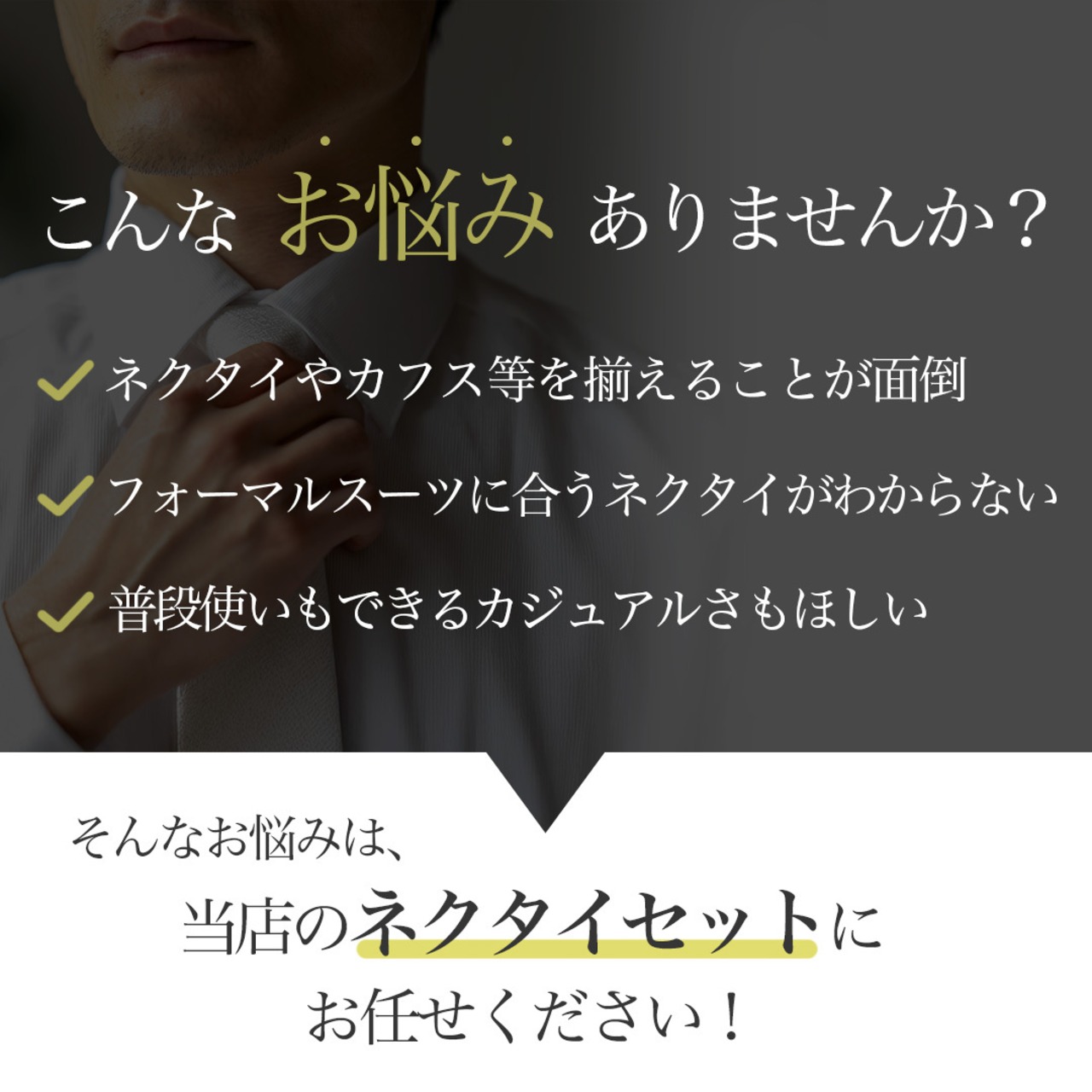 【ネクタイ+ネクタイピン+カフス+チーフ 4点セット】