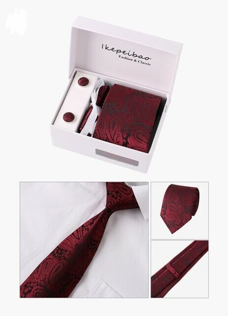 ペイズリー柄 刺繍 フォーマル4点セット ハンカチ チーフ カフスボタンセット ネクタイ ネクタイピン ケース付き ビジネス シーワインレッド、シルバー、ライトブルーン ハンカチ チーフ カフスボタンセット ネクタイ ネクタイピン ケース付き クラシック ボウタイ ポケットチーフ メンズ 二次会 披露宴 プレゼント 通勤用 メンズ ファッション