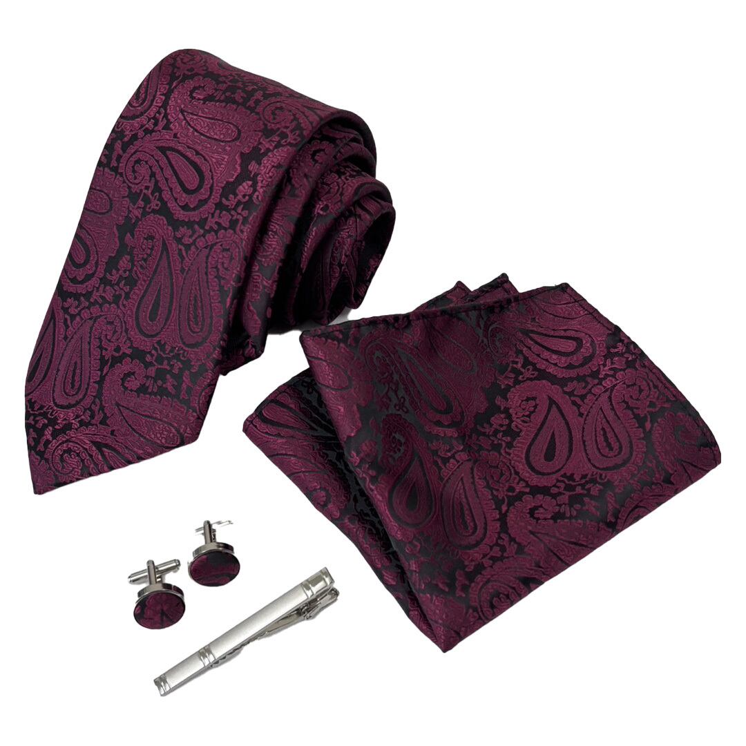 ペイズリー柄 刺繍 フォーマル4点セット 箱付き ハンカチ チーフ ネクタイ カフスボタン ネクタイピン ケース付き ビジネス 結婚式 入学式 卒業式 成人式 メンズ おしゃれ ギフト 上品 個性的 タキシード 礼服 正装 面接 プレゼント 父の日 誕生日 就職祝い 昇進祝い 新生活 新社会人 贈り物 | AiO ONLINE STORE