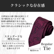 フォーマルからビジネス、特別なお呼ばれのシーンまで幅広く活躍する紳士の必需品。クラシックなペイズリー柄は、落ち着いたスーツに華やぎを添え、胸元を一段と上品に演出します。