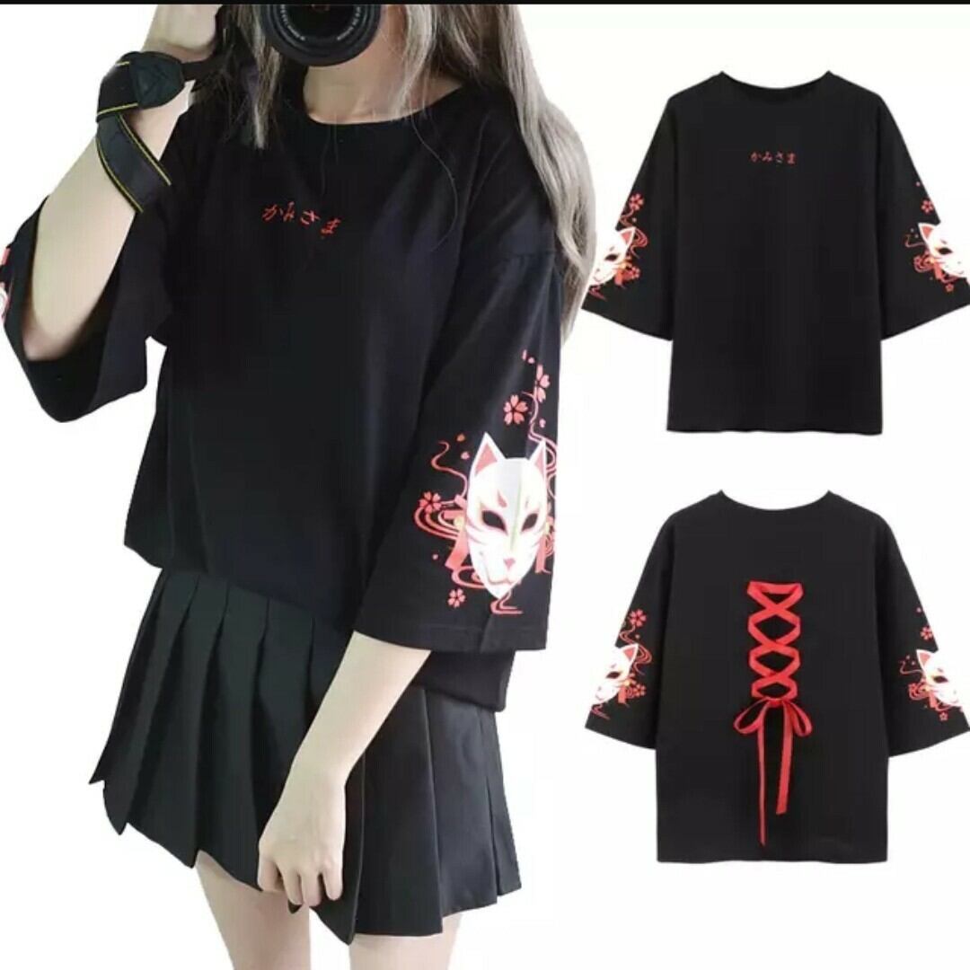 【在庫限り】かみさま 狐お面 韓流ファッション リボン トップス 和柄 半纏(はんてん)法被(ハッピ)長半纏・半天・袢天・法被・半被 お祭り衣