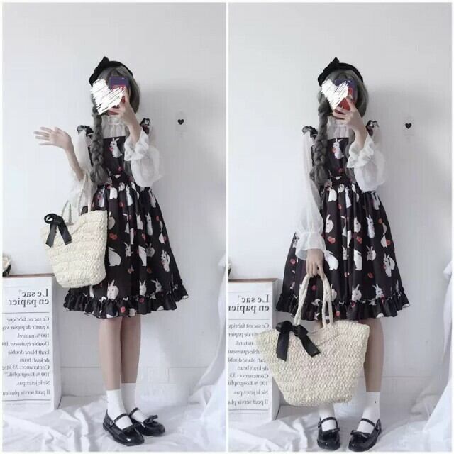 【在庫限り】苺 兎 イチゴ ウサギ ワンピース 上下セット 2点セット ストロベリーラビット ロリータ ゴスロリ、ゴシック、コスプレ メイド