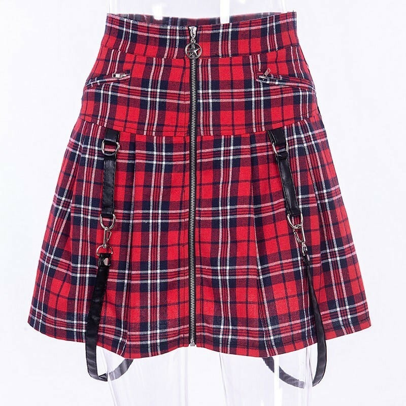 ゴシックスカート ブラック or レッド フリーサイズ 膝上 パンク サスペンダー カジュアル ボトムス コーデ イベント 衣装 コスチューム ゴスロリ お洒落 ミニ 足長効果 ゴスロリ ロック パンク 個性的 人気 ロリータ