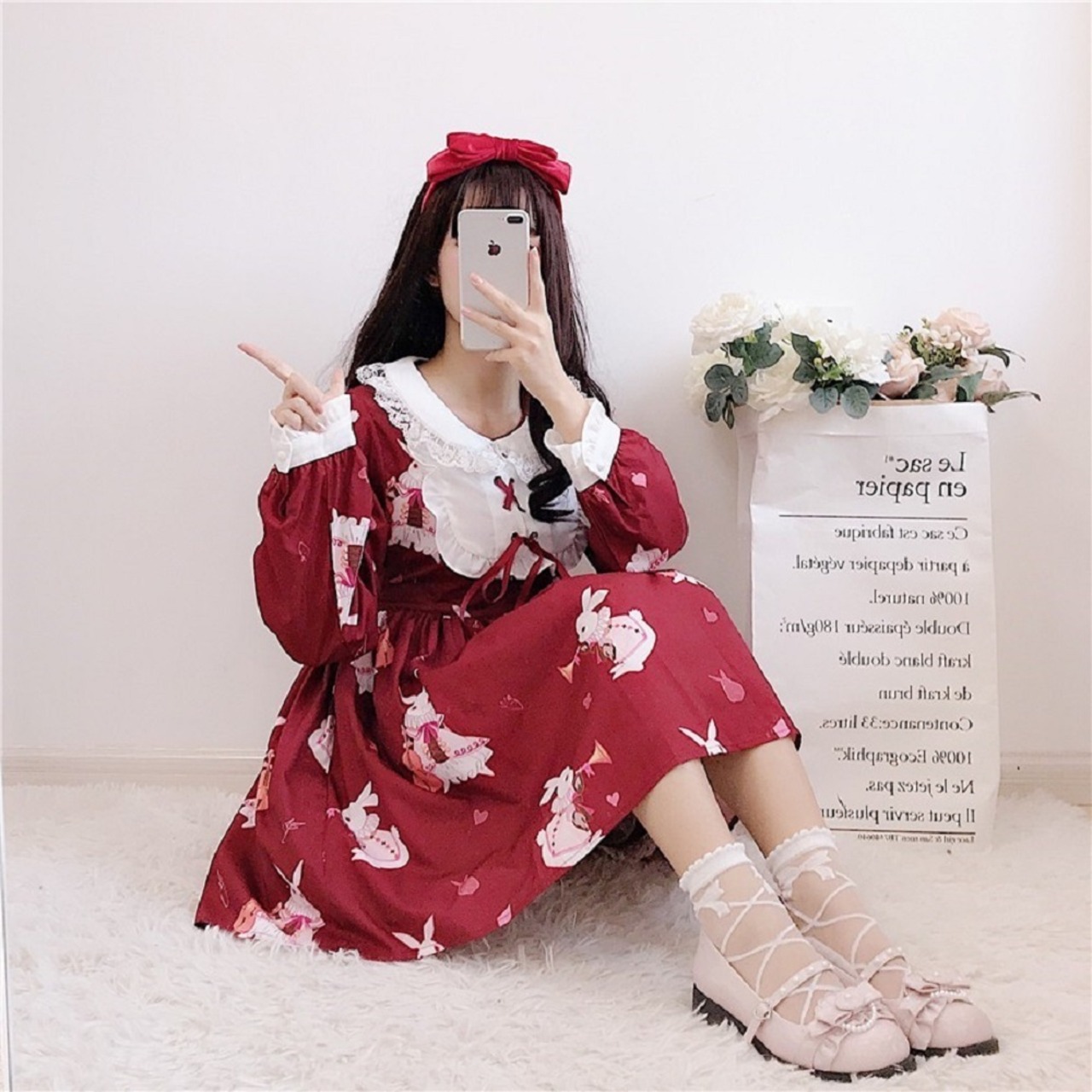 【在庫限り】トランペット ウサギ Mサイズ ワンピース 楽器兎 不思議の国 アリス ロリータ コスプレ 可愛い フリル 編み上げ コスチューム 衣装 少女風 お姫様 ドレス レース