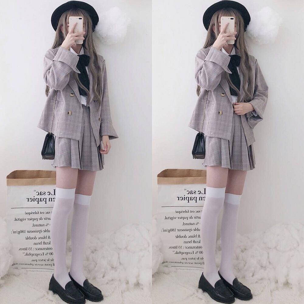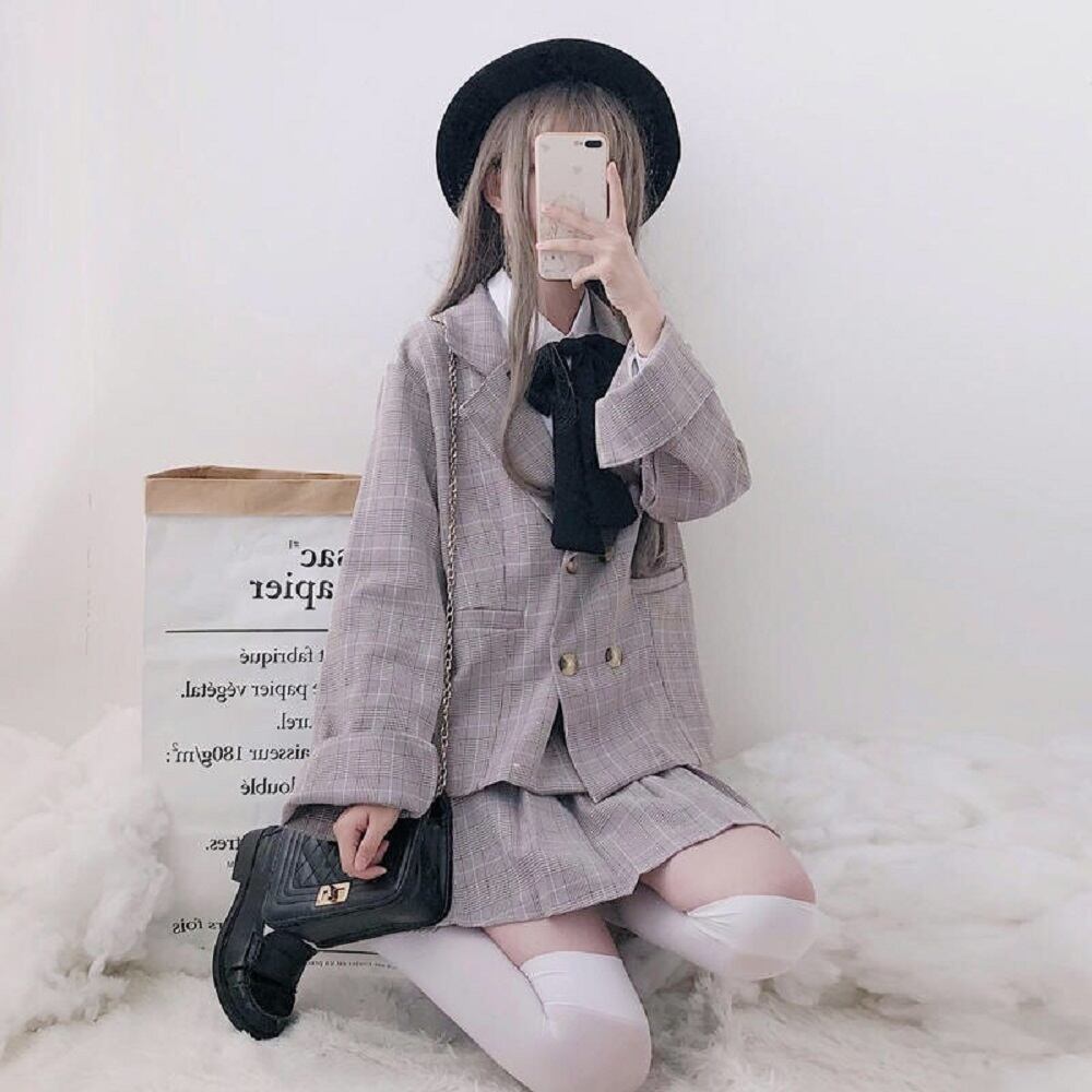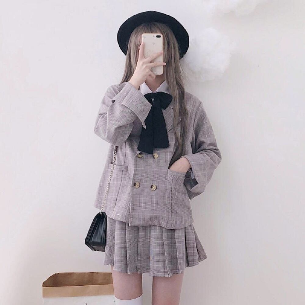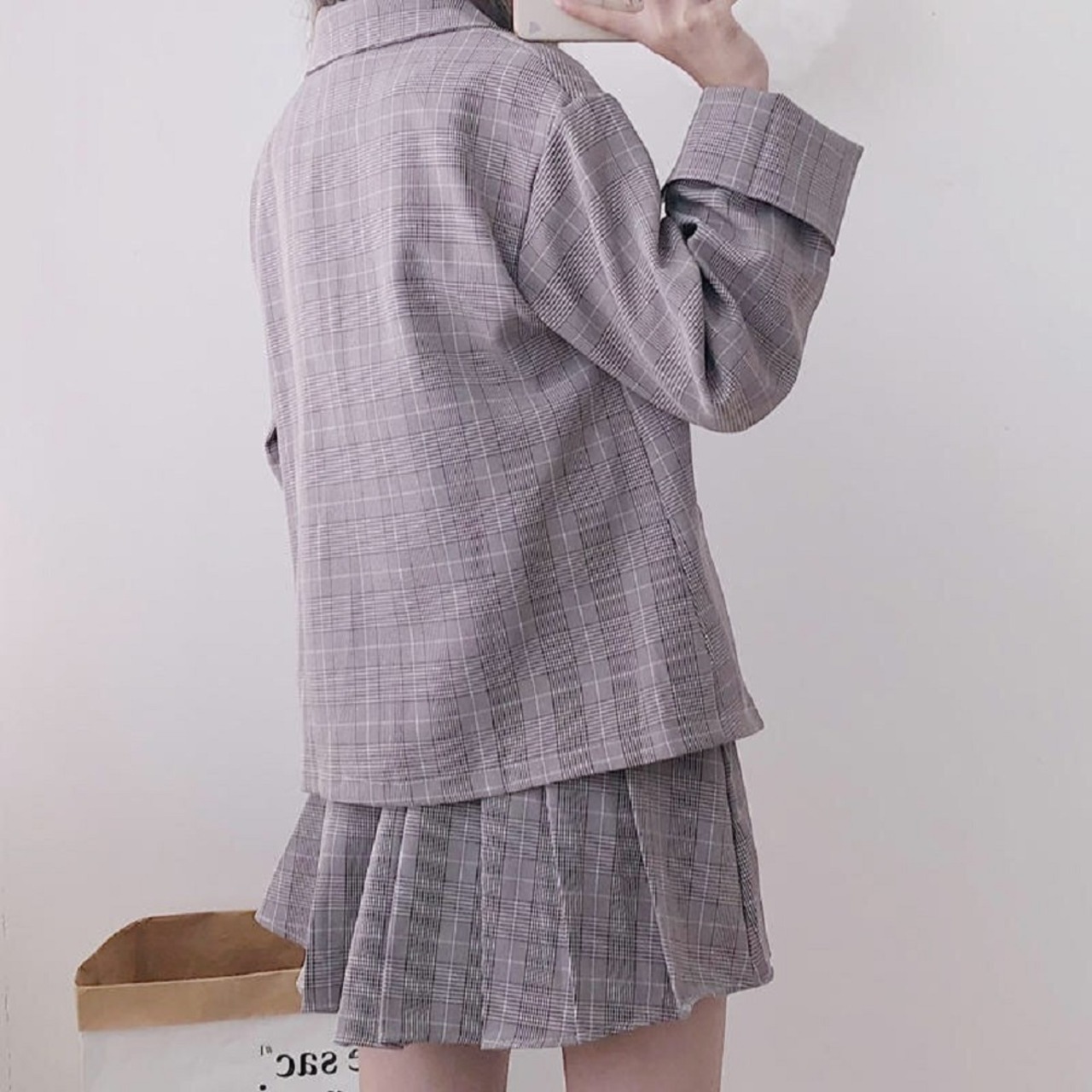 【在庫限り】グレンチェック Mサイズ セットアップ レディースコーデ チェック柄 学院 セットアップ レディース コート+スカート 二点セット 韓国 カジュアル 原宿系