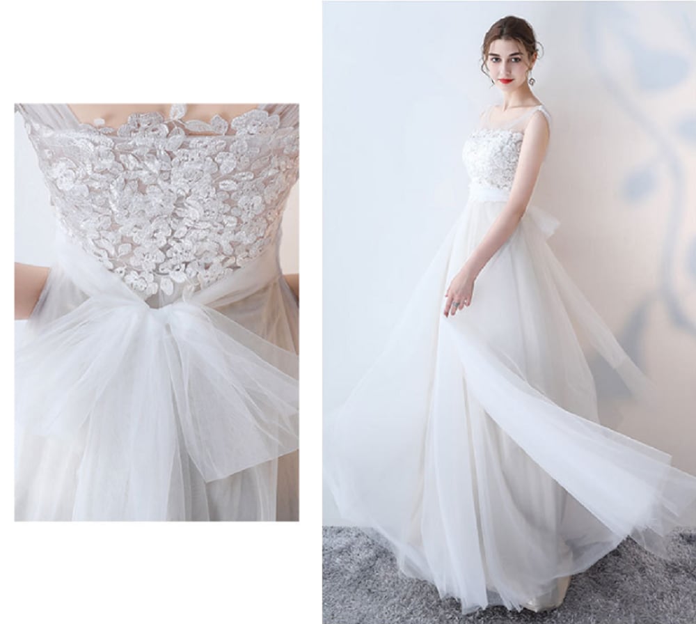 ウエディングドレス レース チュール Aライン ロング 前撮り 後撮り 結婚式 演奏会 発表会 エレガント エンパイアライン ガーデンウエディング ホワイト 花柄 リボン フリル パーティードレス