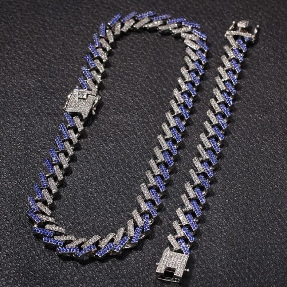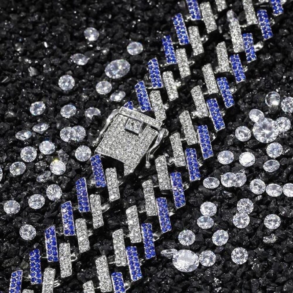 B系ファッションに抜群の相性 ド派手ブレスレット マイアミキューバン メンズ uh ステンレス HIP HOP 太目(シルバー リンク ヒップホップ キヘイ ラッパー B-boy ギャングスター ダンサー キラキラ シルバー チェーンブレスレット メンズ レディース ジュエリー アクセサリー ジルコニア ヒップホップ系 ストリート系 B系 ブリンブリン プレゼント 贈り物 ファッション ギラギラ 青色 銀色