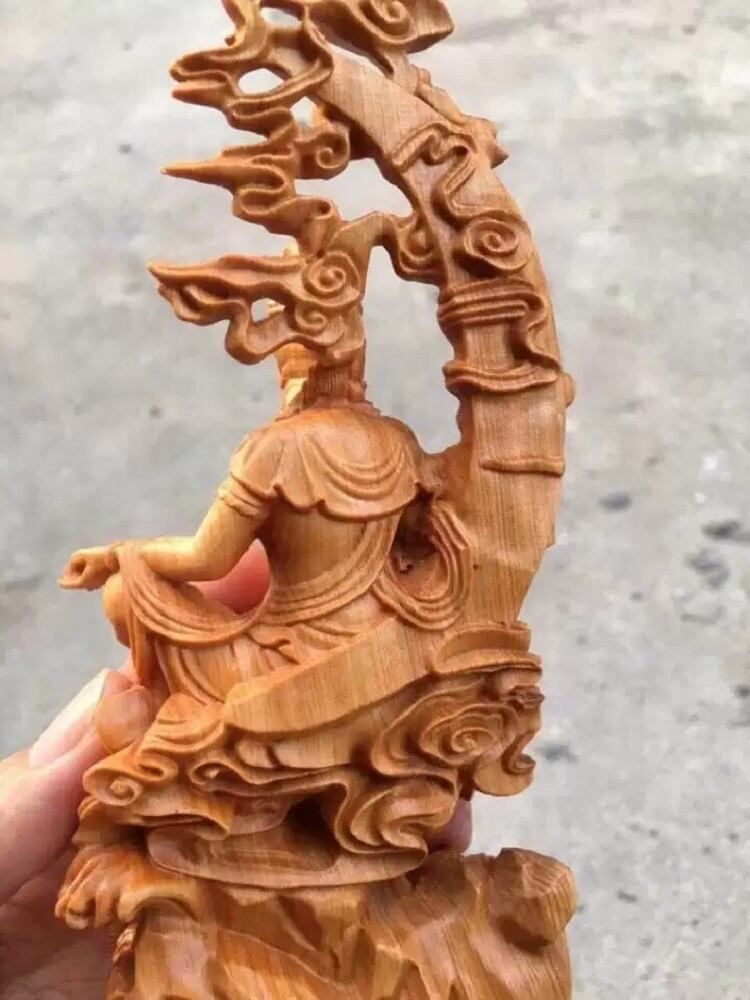 【在庫限り】三日月 雲 観音像 観音菩薩 立像 木彫り 仏像 置物 仏壇 仏像 高級天然 ツゲ木彫り 唐草光背 風水 金運 プレゼント 贈り物 開店祝い 開店 お店 ショップ 会社 経営者 経営 宝くじ 金脈 商売繁盛 商売