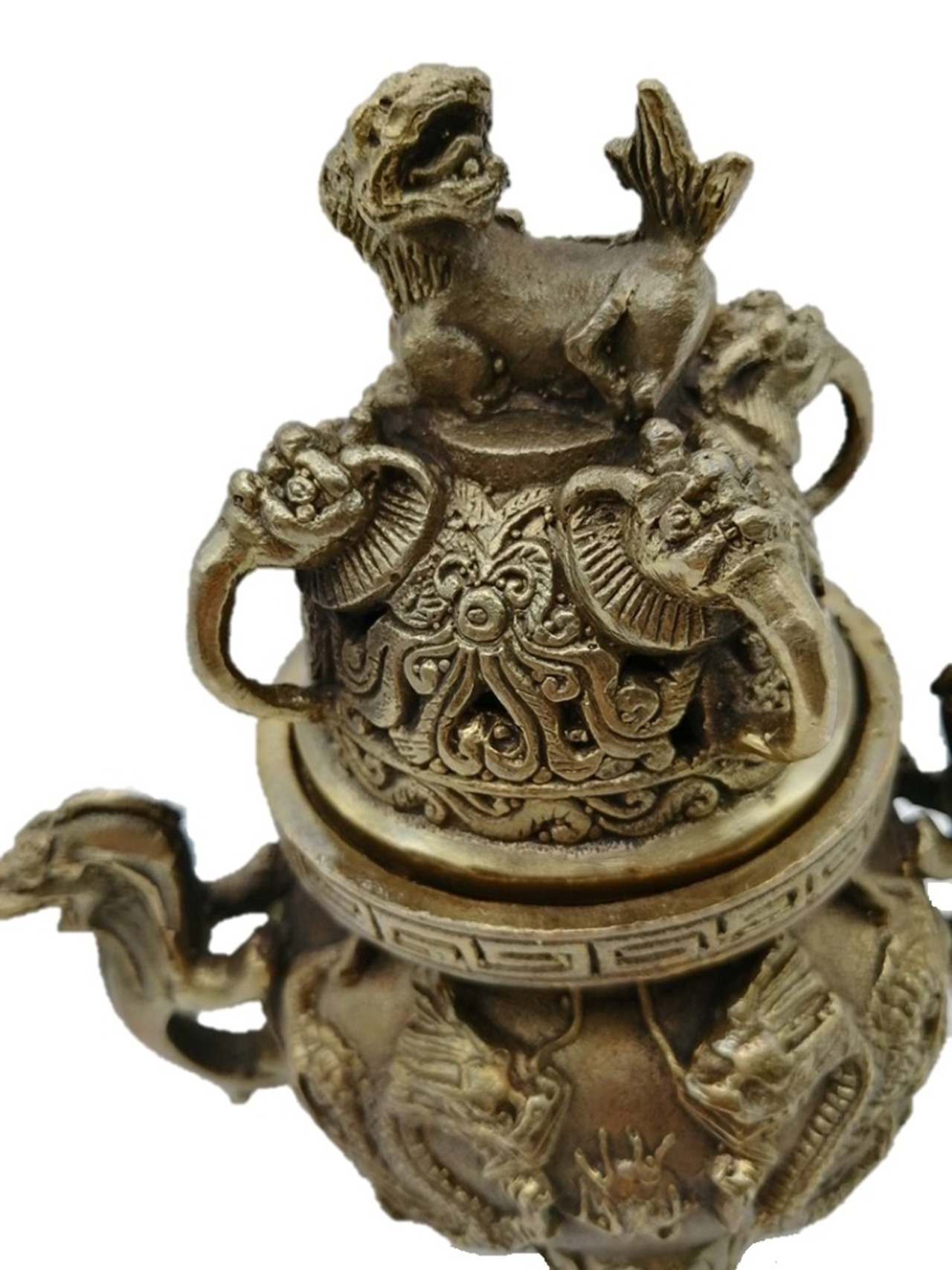 香炉 獅子 龍 銅製開運風水 九龍香炉 大 香炉 茶器 酒壺 香立て 開運風水龍置物 おしゃれ オフィス 玄関先 お香たて 香皿 香立 祝い 誕生日 プレゼント バリ雑貨 アジアン 雑貨 仏像 開運祈願 金運祈願 新品