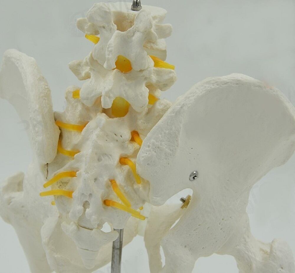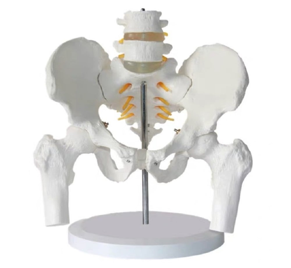 下部腰椎(L4、L5)および骨盤、脊髄、大腿骨が一体となった人体模型です。