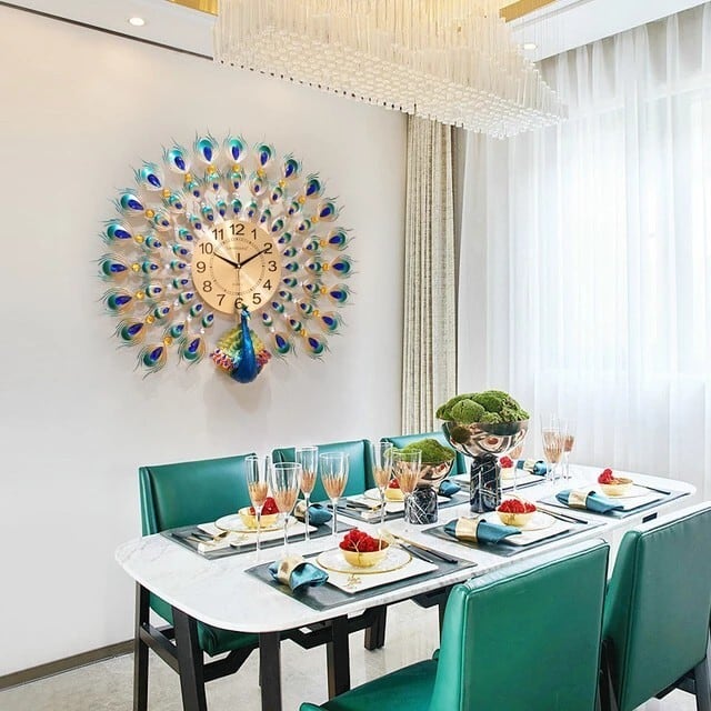 60cm 特大 孔雀 壁掛け時計 シルバー ブルーストーン 孔雀 デザイナーズ 掛時計フラワー 時計 おしゃれ エレガント クラシック リビング時計 ウォールクロック 時計 デザイナーズクロック デザイナーズ カフェ インテリア 北欧 モダン おしゃれ Design Wall Clock デザイン