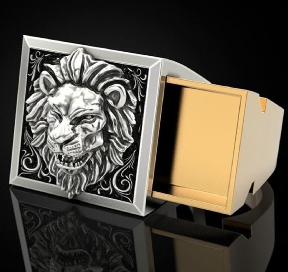 LION ライオン 盗賊 リング お宝 隠し スペースリング スライドリング 秘密の指輪 リング 遺骨 指輪 リング 遺骨 メモリアルリング 火葬リング リング 指輪 シルバーカラー燻し風仕上げ メンズ リング リッチ 重量感 スパイグッズ マジック 手品 面白グッズ