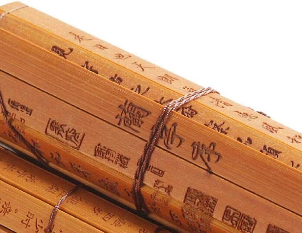 竹を紐でつなげたものに文字を彫りこんでいます。