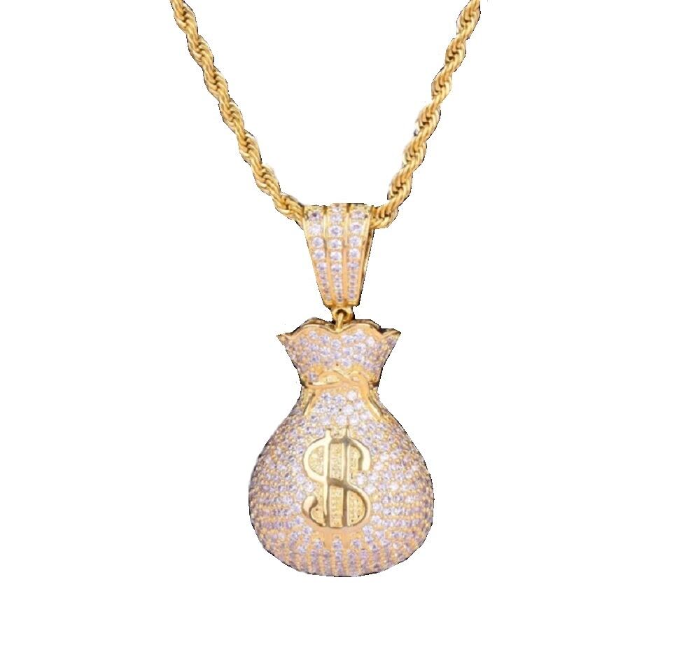 ドル袋 ネックレス ゴージャス ゴールドネックレス チェーン dollar ドルマーク付き ゴールドメッキ ヒップホップチェーンネックレスペンダント メンズ レディース 男女兼用 ジュエリー HIPHOP アクセサリー ヒップホップ系 ストリート系 B系 ジルコニア 開運 金運 成功 神様 風水 飾り物 誕生日