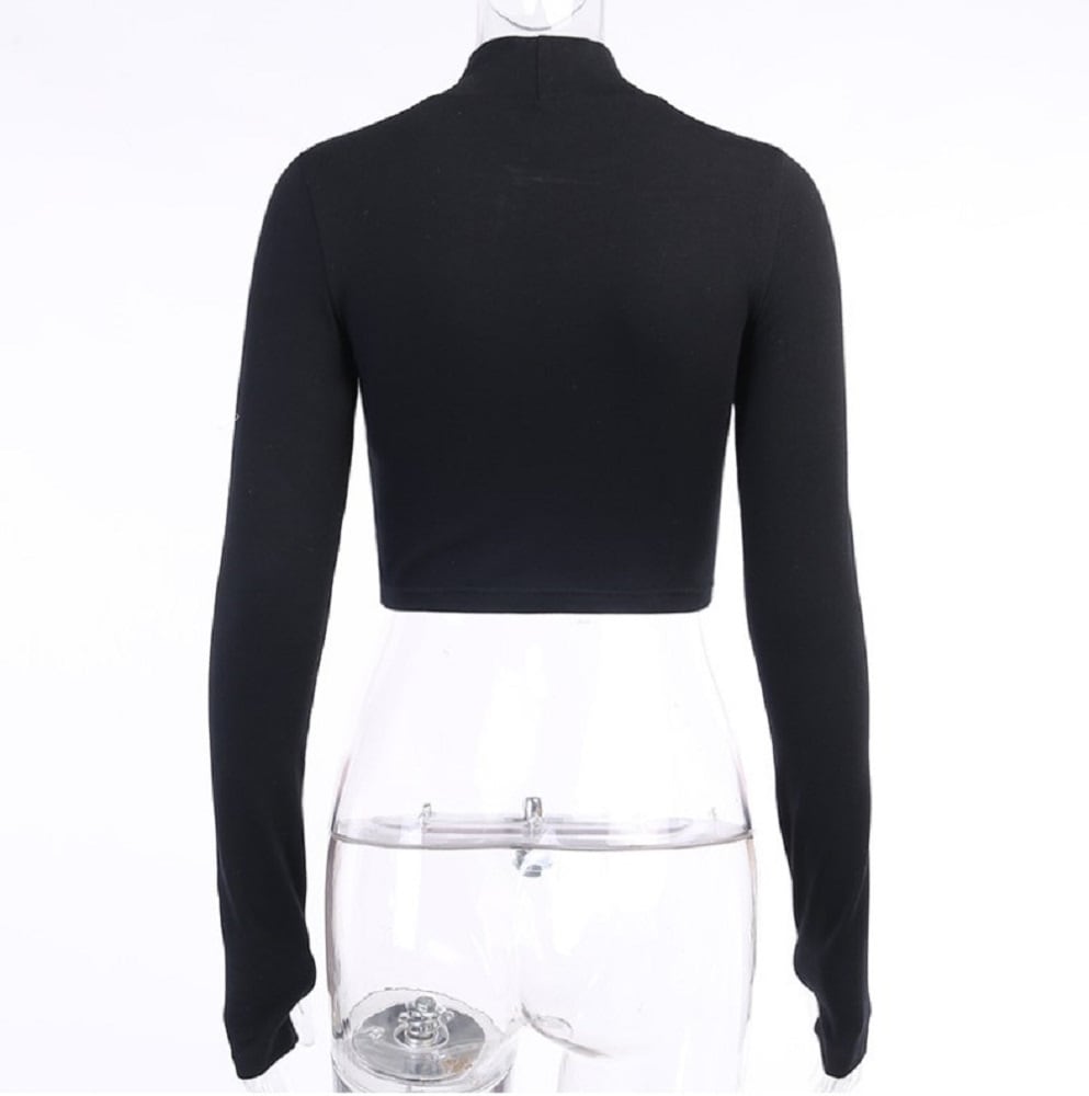 ダンス衣装 へそ出し タートルネック ロゴ入り ショートトップス 韓国ファッション 長袖 トップス ステージ衣装 ダンス衣装 ヒップホップ ストリート ファッション 原宿系 ショート丈? クロップトップ シンプル 黒 へそだし ダンス オルチャン ハイネック